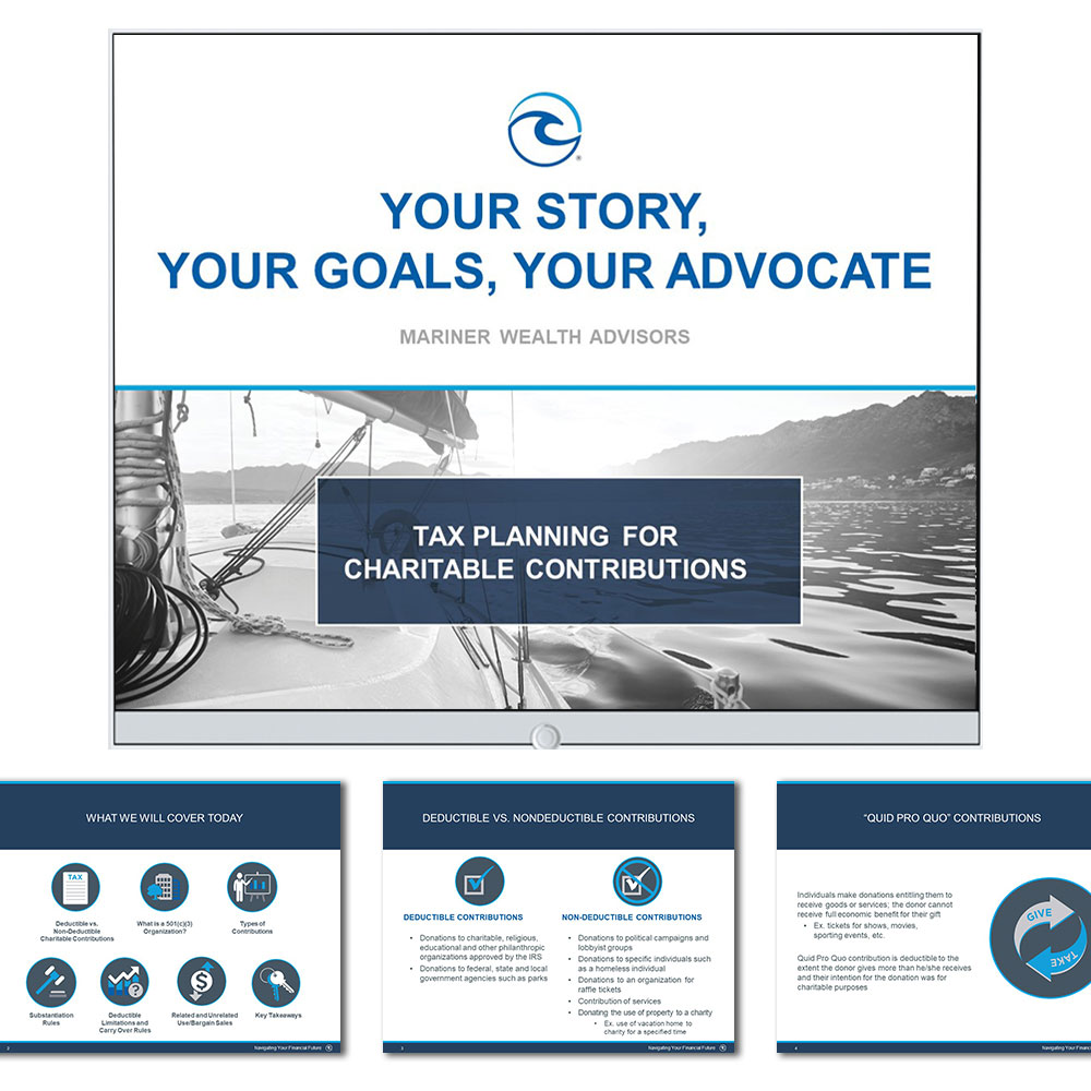 With the new tax plan, it is important to understand the implications of charitable contributions on your tax plan. This presentation covers: