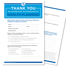 Many of our prospects understand the importance of implementing a wealth plan but feel overwhelmed with where to begin. Introducing a series of manageable steps, we can greatly simplify the process and clarify the importance of developing a plan. In this presentation, we highlight various planning topics to consider, including: