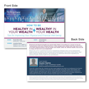 Speaker(s): Local Health Industry Professional & a Mariner Wealth Advisors advisor/senior wealth consultant (host) or, if you would like a speaker from the home office, such as Brian Leitner or George Fernandez, please let us know.